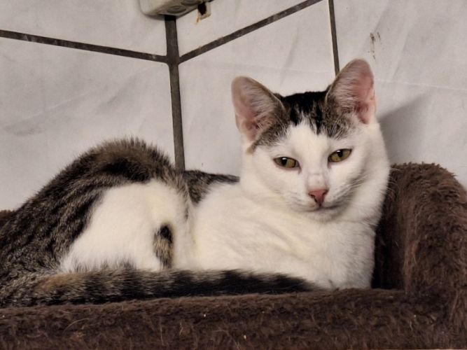Chippy kam gemeinsam mit ihren Geschwistern in unser Tierheim. Die junge Katze ist eine eher ruhige und abwartende Persönlichkeit, die neue Situationen zunächst vorsichtig beobachtet. Sie braucht Zeit, um Vertrauen zu fassen, und möchte in ihrem eigenen Tempo ankommen dürfen.