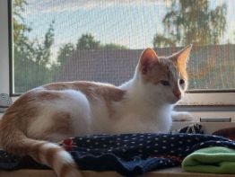 Sunny (m) rot mit viel weiß, ist schüchtern und vorsichtig. Hat er Vertrauen gefasst ist er ein ganz umgänglicher Typ.
