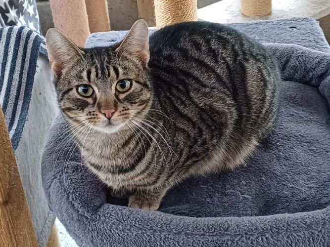 Diese hübsche Samtpfote kam in einem sehr schlechten Zustand zu uns ins Tierheim: Gezeichnet von einem heftigen Katzenschnupfen war sie anfangs schwach und zurückhaltend. Dank liebevoller Pflege, Geduld und medizinischer Versorgung hat sie sich jedoch großartig entwickelt und ist heute kaum wiederzuerkennen.