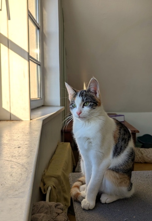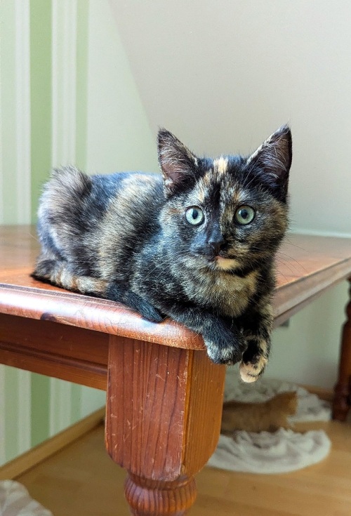 Diese zwei Schönheiten möchten gerne ihr eigenes Zuhause und Sofaplatz. Es handelt sich um zwei junge Damen. Die tricolor Dame heißt Belle und ist anfänglich zurückhaltend, aber sie taut immer mehr auf. Die kleine schildpatt Dame Aurora liebt Streicheleinheiten. Beide Damen möchten nach einer entsprechenden Eingewöhnungszeit Freigang geniessen