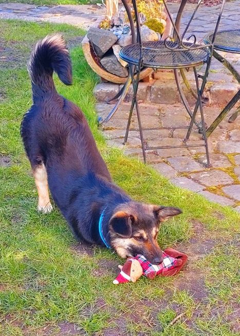 liebevoll, verspielt, verträglich mit Hunden und Katzen, sammelt leidenschaftlich gerne Schuhe in seinem Körbchen, ein unkomplizierter Begleiter, der einfach nur ankommen möchte. Wohnt derzeit in Bergen